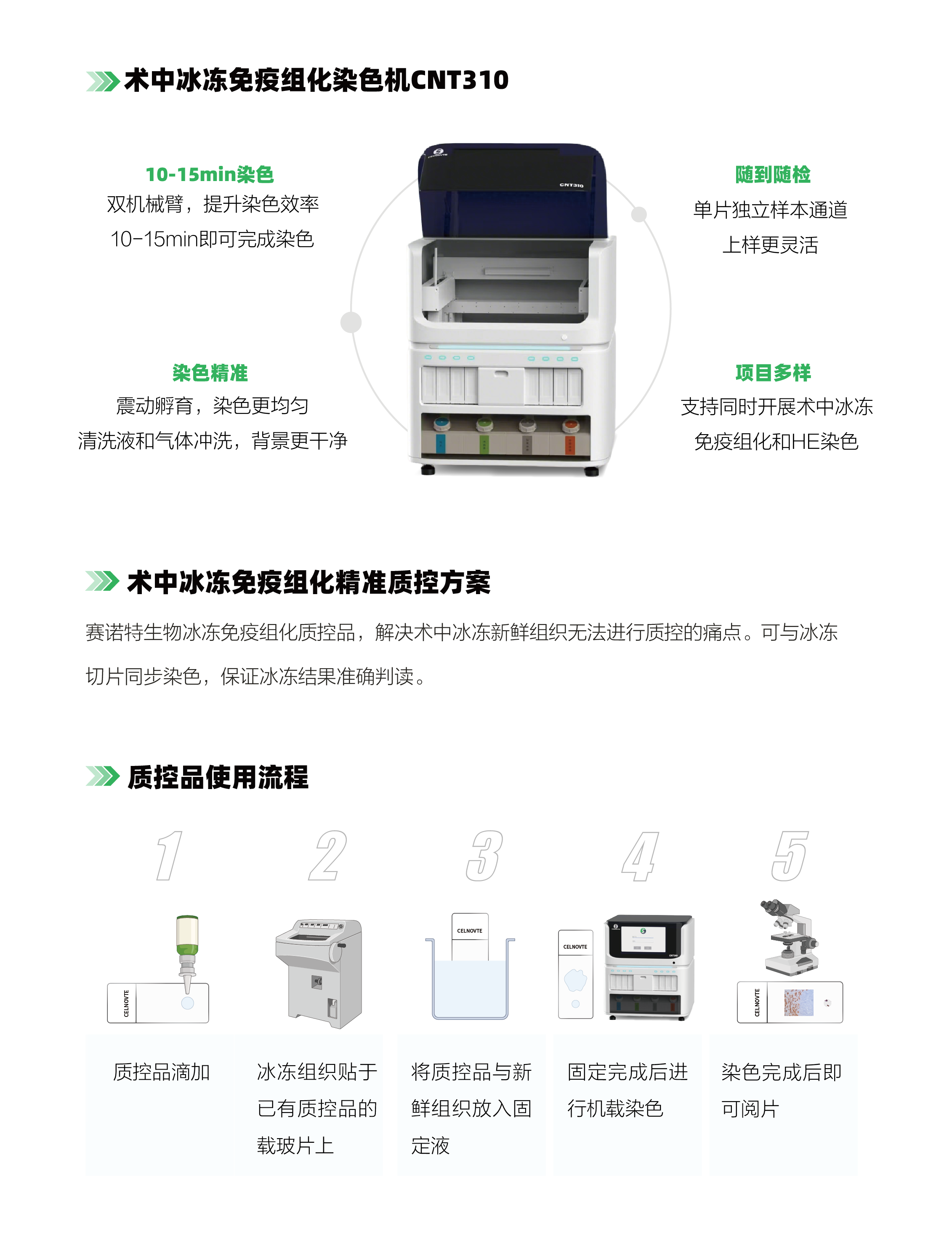 术中快速PolyStackerPlus 免疫组化检测试剂盒专为术中冰冻免疫组化检测技术定制,可用于鼠源或兔源抗体的显色检测。产品核心技术在美国赛诺特团队自主开发的“MicroStacker™微聚合物层叠法”的基础上,增加了过氧化物酶自主聚合("Poly-HRP")程序,开发出新一代多聚酶偶联化学“PolyStacker™”,进一步提升了聚合物的灵敏度和特异性,从而实现了术中快速精准的免疫组化染色。