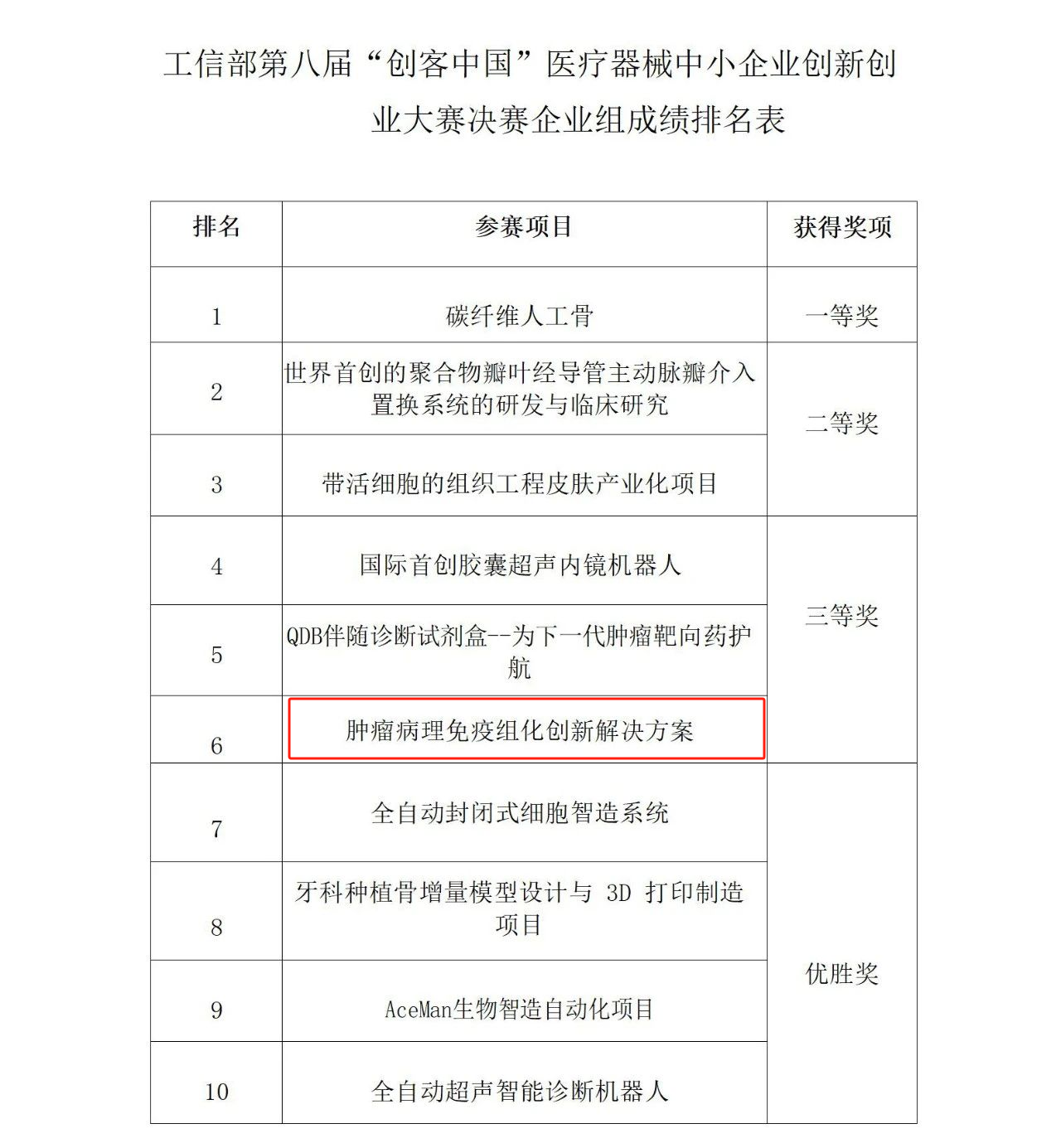 从东部、中部、西部赛区选拔出来的69个项目,经过连续两天的激烈角逐,最终评选出企业组一等奖1名,二等奖2名,三等奖3名,优胜奖4名;创客组一等奖1名,二等奖2名,三等奖3名,优胜奖4名。赛诺特生物参赛的“肿瘤病理免疫组化创新解决方案”获得本次大赛企业组三等奖的好成绩!