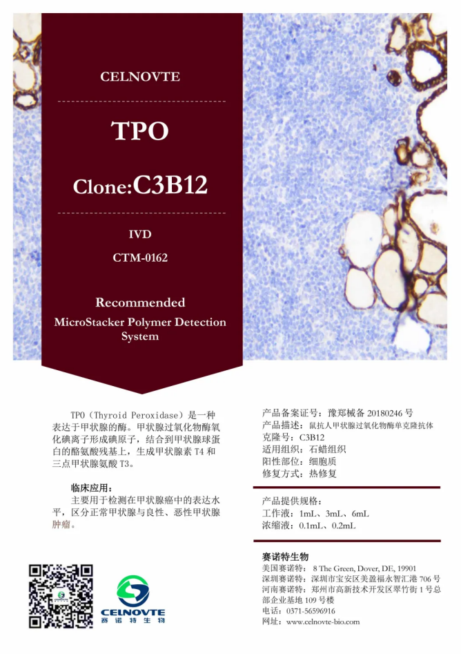 赛诺特抗体中心于金秋十月推出包括TPO、CD68、S100p在内的多种IVD级抗体,并将持续为病理检测提供高标准试剂,方便用户选择与比较,也欢迎各位用户体验、反馈~